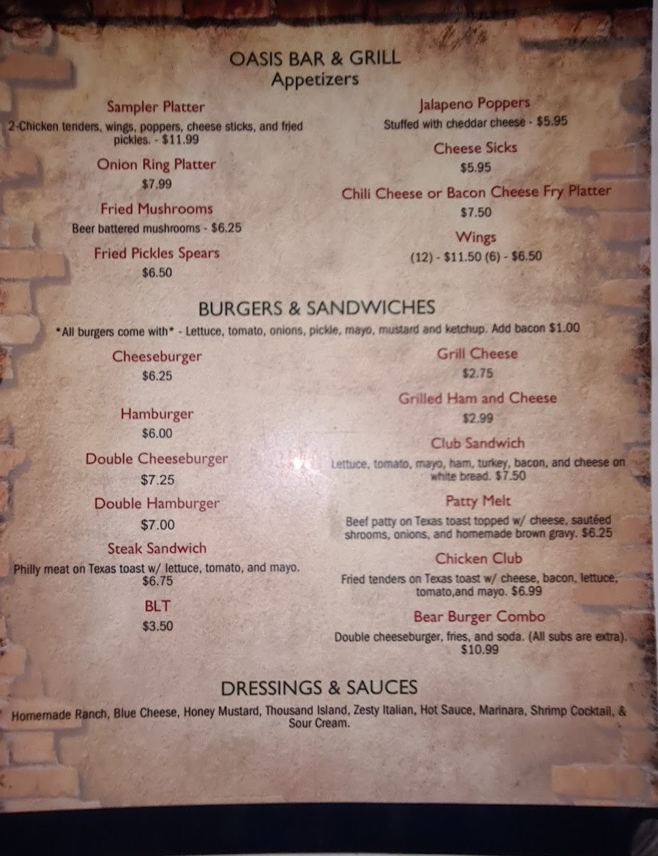 Welcome to Oasis Bar & Grill Cottondale, a local treasure nestled in Cottondale, AL. Located at 6720 University Blvd E, this vibrant establishment serves up some of the most celebrated burgers around. Diners rave about the generous portions, with burgers so substantial they can satisfy even the heartiest appetites. The atmosphere blends a laid-back dive bar feel with live music, creating an inviting space for friends and family.